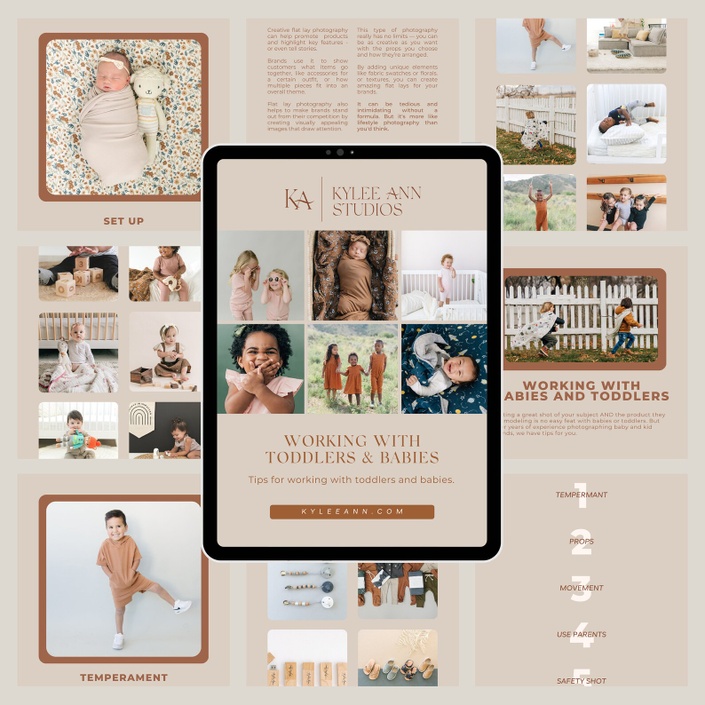 This Working with Babies and Toddlers Guide will teach you how to work with toddlers and babies in your product shoots. The guide covers temperament, poses, angles, props and other helpful tips!